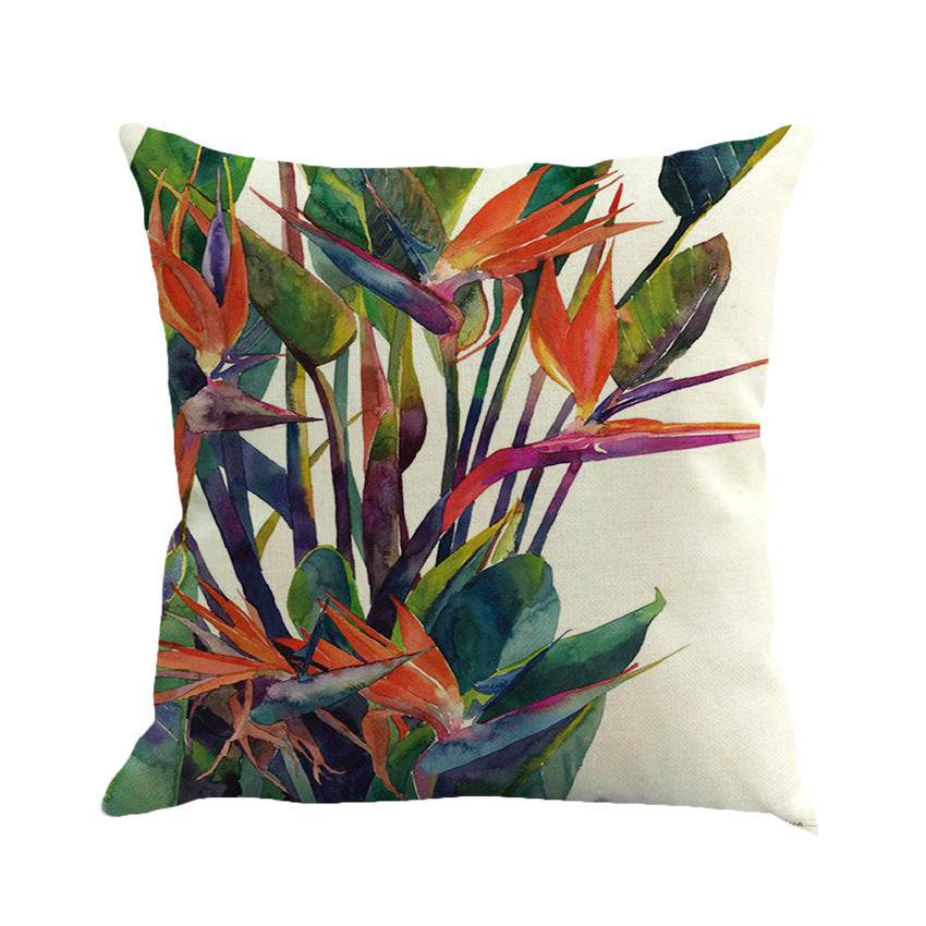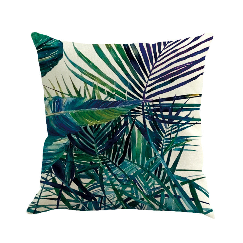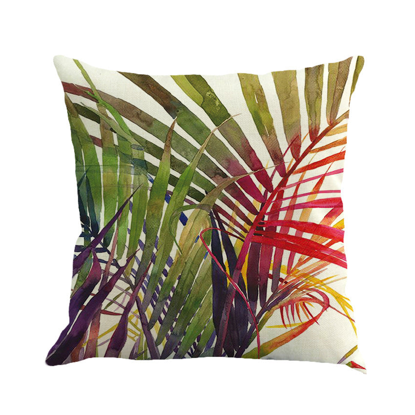 Funda de almohada de algodón y lino con plantas tropicales